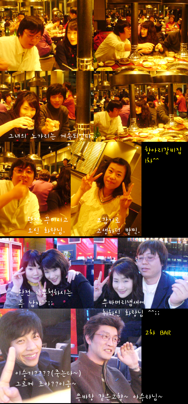 모임그날 이후로 전 정신이 없이 오늘까지 왔네요...모임사진보니까 정말 울사장님 넘 미워요....나두 정말 가고싶었는데...12월달에는 안하나요?? 모임 있으면 좋으련만...정말 마니 아쉽네요...ㅠ.ㅠ